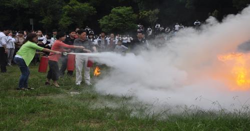 報(bào)警鈴聲突然“叮叮”地響了起來,所有同學(xué)都按照之前老師已經(jīng)安排好的逃生計(jì)劃有序地進(jìn)行著。所有人都是匍匐前進(jìn),神情緊張而又嚴(yán)肅,因?yàn)榇蠹叶贾溃姥萘?xí)可不是鬧著玩的,這是跟逃生有關(guān)系的,是跟自己的生命有關(guān)系的。大家都有序地撤離到了操場(chǎng)上,然后大家都坐到了操場(chǎng)旁邊的臺(tái)階上,觀看消防大隊(duì)的大隊(duì)長為我們展示如何使用滅火器。他先從臺(tái)階上叫了五名同學(xué)下來,給了他們每人一個(gè)滅火器,接著向全體師生講述使用滅火器的方法。他首先把滅火器上下顛倒搖晃了幾下,又把滅火器上的插銷拔掉,這時(shí)他特別提醒道:一只手要拿著壓柄,另一只手一定要握著橡皮管。如果碰到了別的地方,尤其是滅火器上的金屬殼,當(dāng)滅火器里的物質(zhì)噴出時(shí),會(huì)吸收大量熱量,手會(huì)嚴(yán)重凍傷。他接著示范著,他一手拿著壓柄,一手握著橡皮管,只見他用力一壓,從橡皮管里噴出的白色泡沫噴射在了火焰根部,火焰被迅速熄滅了。旁邊的五名同學(xué)瞪大了眼睛,驚奇地看著,臺(tái)階上的同學(xué)也都拍手叫好。到了那五名同學(xué)了,只見他們一步一步按照老師教的方法做,同樣也滅了火,大家都?xì)g呼著。消防演習(xí)便在一片歡呼聲中結(jié)束了。