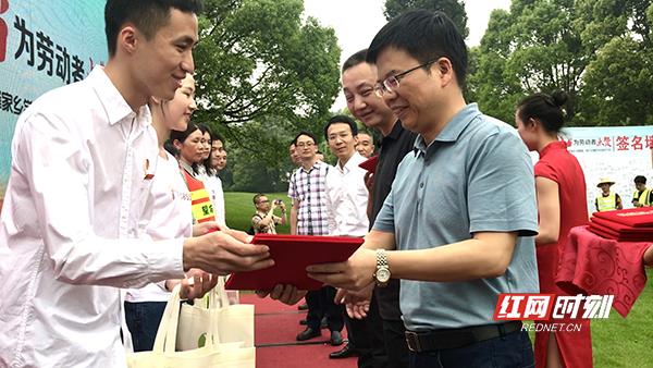 主辦方還聯(lián)合發(fā)起了《“為勞動者點贊”學雷鋒志愿服務活動倡議書》,呼吁廣大市民從我做起,以共建美好環(huán)境為己任,珍惜勞動成果,關愛環(huán)衛(wèi)工人;參與環(huán)境整治,共建美好家園;投身志愿服務,踐行雷鋒精神,以此爭做文明市民,共建雷鋒故鄉(xiāng)?;顒蝇F(xiàn)場,全體環(huán)衛(wèi)和園林工友、企業(yè)員工代表、大學生代表來到倡議書背景板前,簽下自己的名字,并集體宣誓。