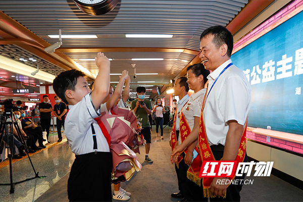 紅網時刻長沙9月10日訊(記者 胡芳 張必聞 通訊員 喬伊蕾)“能將山里的娃娃送出大山,以知識改變他們的命運,是我一生的夢想,是我最大的心愿。”9月10日上午,全國首列教師節(jié)主題列車從長沙地鐵湖南師大站發(fā)車。“首屆湖南省教書育人”楷模卓德剛表達了他的愿望,許多貧困家庭因為他執(zhí)著的堅守,實現(xiàn)了“培養(yǎng)一人,脫貧一家”的小夢想。乘客們被他的故事吸引駐足,紛紛為教書育人楷模點贊。